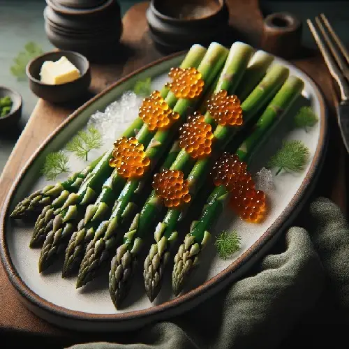 - Arranging the Dish: Arrange the buttered asparagus spears on a serving platter, creating an attractive display that showcases their natural beauty and prepares them for the addition of caviar.