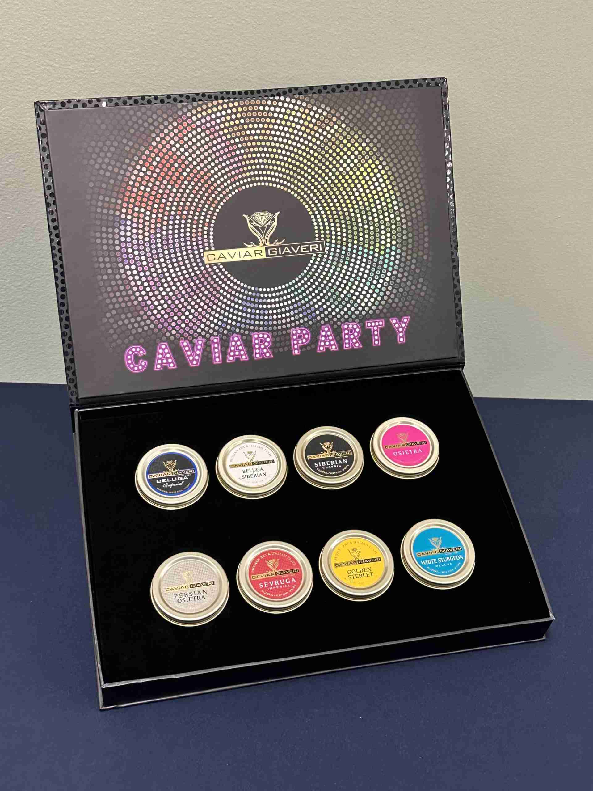 For the 30g & 50g box: Giaveri Beluga, Giaveri Beluga/Siberian, Giaveri Siberian, Giaveri Osetra, Giaveri Persian Ossetra, Giaveri Sevruga
