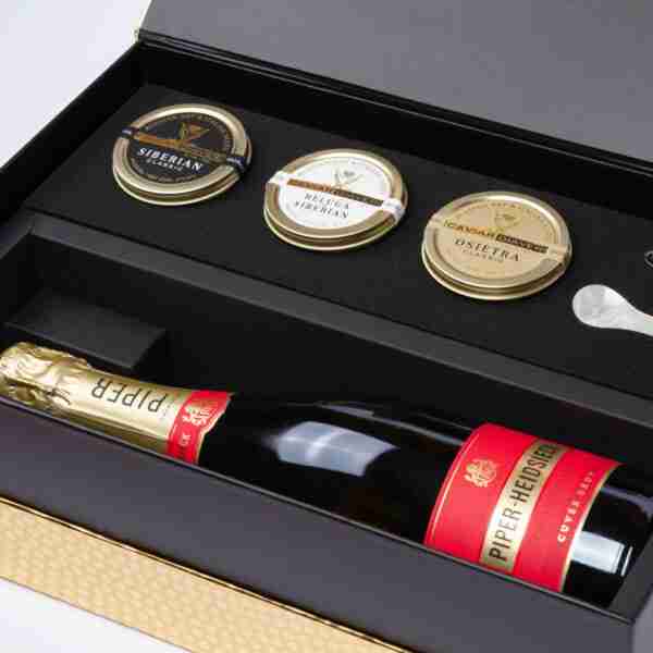 Unveil the ultimate expression of luxury with The Golden Indulgence Collection—a radiant gold box showcasing the harmonious pairing of our signature caviar trilogy. This opulent gift set is a celebration of timeless glamour and culinary artistry, crafted for those who appreciate life’s finest pleasures.