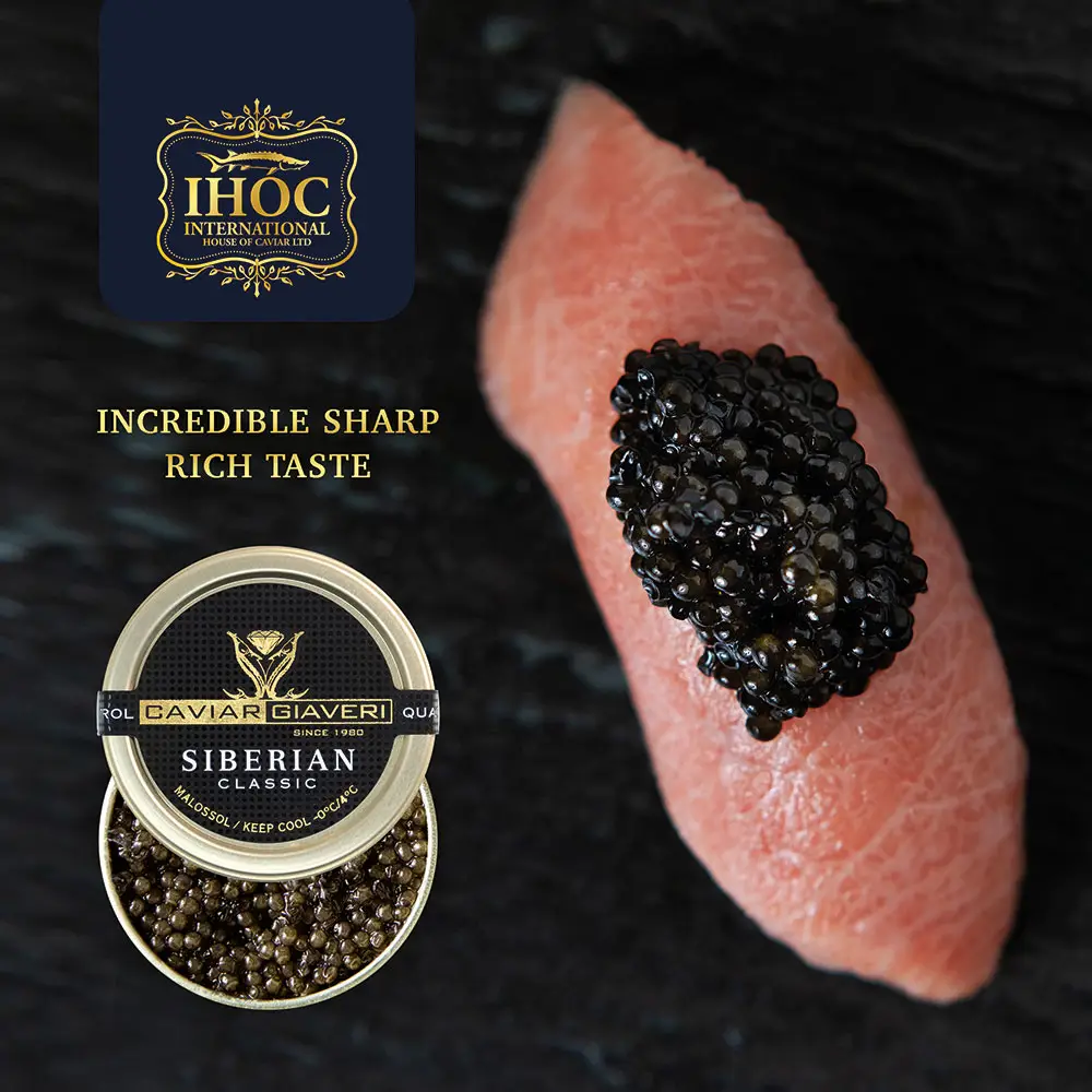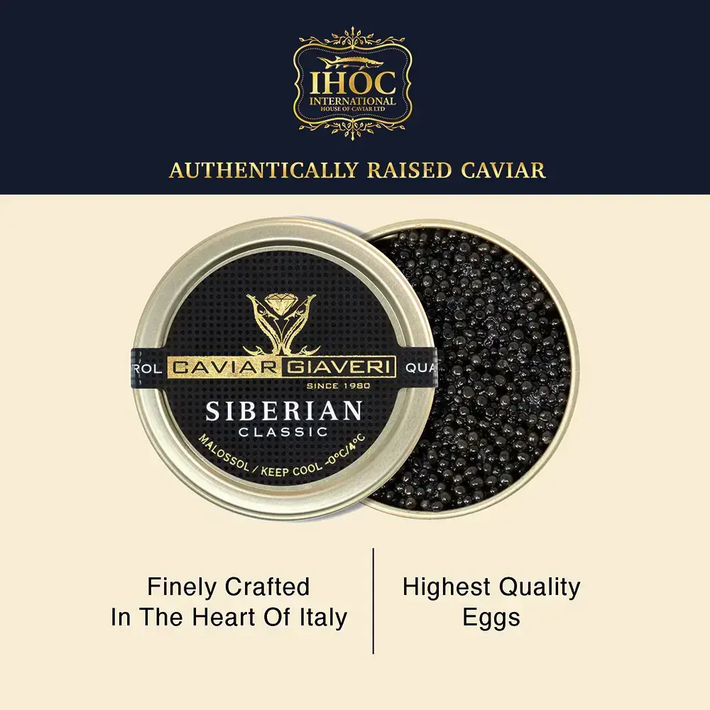 Step into a realm of unparalleled flavor with Giaveri Siberian Sturgeon Caviar, a tribute to classic tradition crafted in the heart of Italy. Sourced from the esteemed Giaveri sturgeon aquacultures, this caviar epitomizes excellence and sophistication.