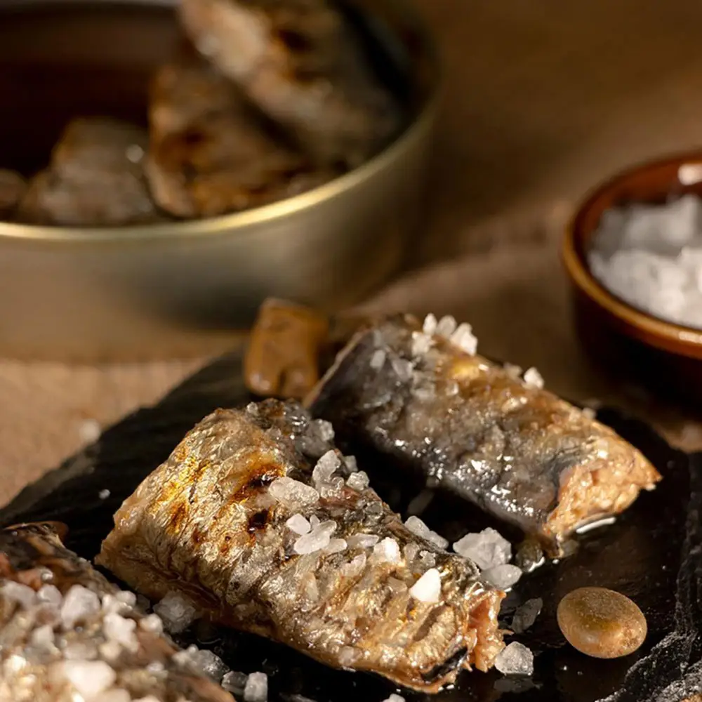 Our expert chefs skillfully grill the sardine tails with holm oak wood, preserving them in Arbequina de Castillo de Canena Extra Virgin Olive Oil. Enhanced with a touch of apple cider vinegar and aromatic spices, each bite is a symphony of flavors that tantalizes the palate.