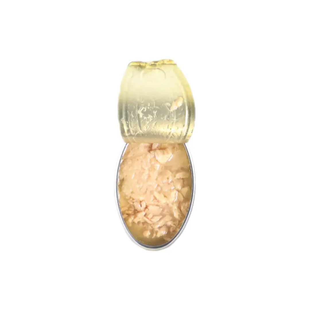Yellowfin Tuna Belly “Atun Claro” in pickled sauce, the most delicious part of the Yellowfin of the Cantabrian Sea. In this exquisite conserve, you can enjoy delicious light tuna loins covered in a traditional marinade, smooth and clear, with a perfect balance of vinegar, oil, and salt.