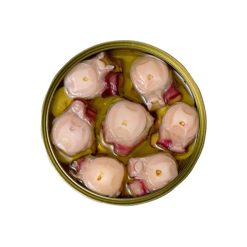 Indulge in the exquisite taste of our carefully selected octopus sourced from the finest origins. Crafted using traditional techniques, each octopus medallion is meticulously cut and individually hand-packed. Our commitment to quality is evident in every bite.